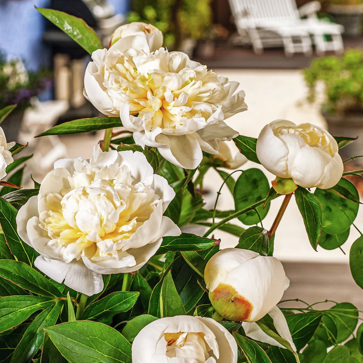 Wie eine wahrhafte Herzogin zeigt sich die Duchesse de Nemours besonders prunkvoll. Ihre dicht gefüllten weißen Blüten verströmen einen fruchtig-frischen Duft mit Zitrus-Nuancen und sind an Eleganz kaum zu überbieten. Mit dieser Duftpfingsrose zieht der Blumenadel in Ihren Garten ein!