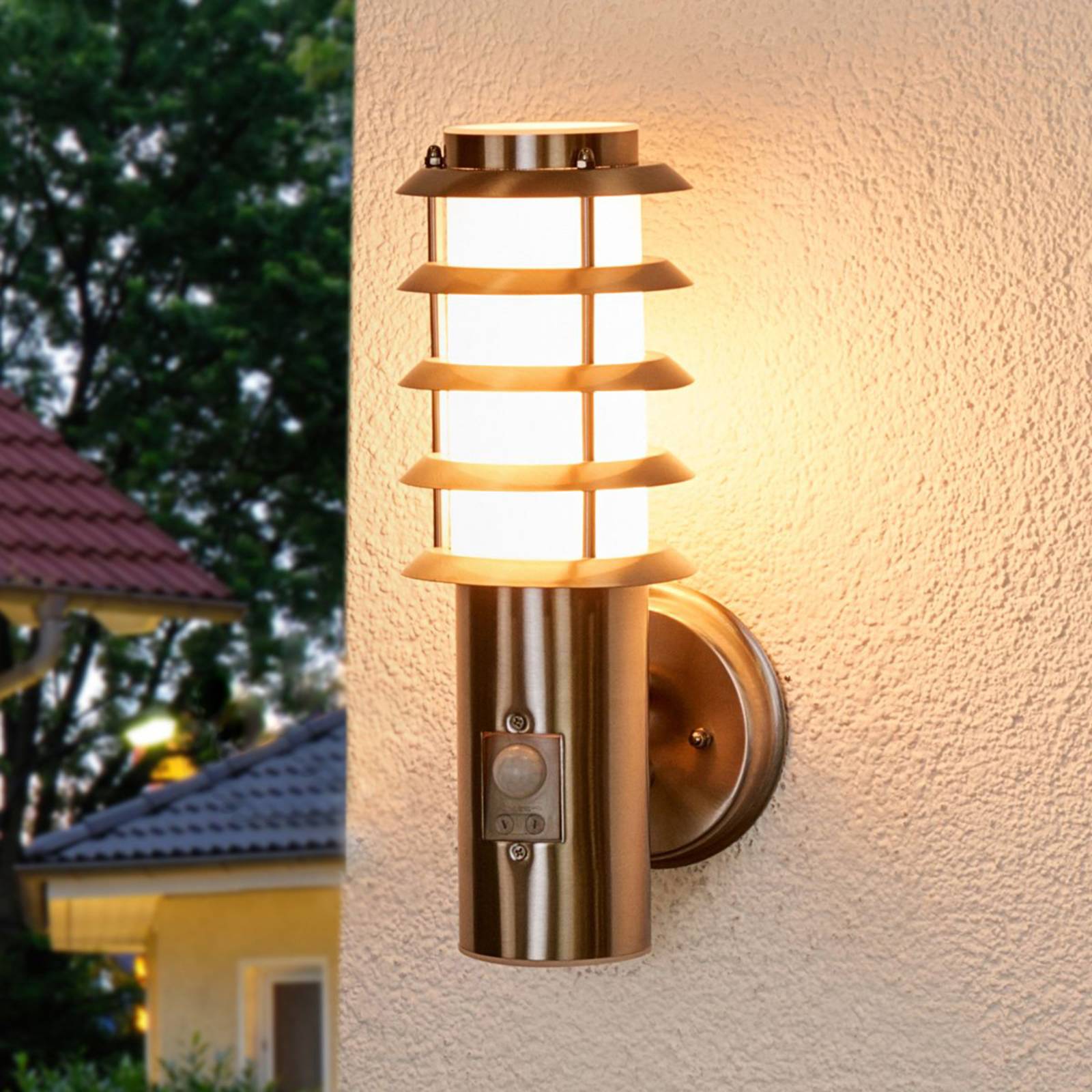 Praktische Sensor-Außenwandleuchte Selina mit Edelstahlkorpus